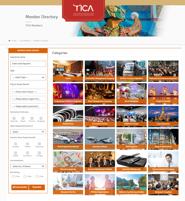 Marketing Activities include: - Promoting Thailand as a preferred destination for meeting, incentive, convention and exhibition events, including the hosting and coordination of educational and familiarisation visits as well as site inspection visits. - Organising domestic incentive familiarisation trips for corporate executives to encourage the growth of incentive and meeting events within the country. - Planning and undertaking sales promotional trips, participating in relevant trade shows and joining various promotional activities undertaken by Tourism Authority of Thailand and Thailand Convention and Exhibition Bureau (Public Organisation) or TCEB. - Production of sales aids and promotional materials, such as TICA Press Kit, TICA Membership Directory, website and audio-visual promotional aids. - Regularly reviewing and evaluating results of all marketing and promotional projects. Membership & Public Relations Activities include: - All matters relating to association membership including the screening of new applications, setting of fees, monitoring of professionalism and ethics, and initiating communications from TICA Board of Directors to members. - Generating publicity for TICA, its activities and events. - Supervise production of the association newsletter, known as TICA Update, a bi-monthly publication - Maintaining TICA Database which consists of incentive organisers, meeting planners, journalists and other concerned parties worldwide - Organising social events for members to encourage inter-relations, such as the annual year-end party, family rally and sports day and the quarterly TICA Members Get-Together Luncheon meetings. Capabilities Development Activities cover the provision of support facilities and infrastructure for events in Thailand, such as: - Initiating, producing and developing educational and training projects, including the annual educational seminars organised in major destinations in Thailand in conjunction with SITE Thailand Chapter and other groupings with the aim of providing basic information on organising and holding conventions and incentives for interested member organisations. - Organising the Biennial Convention Promotion Seminar for government officials and corporate executives responsible for organising meeting and convention events. The seminar aims to encourage the hosting of events by providing knowledge of bidding and organising. - Developing awareness and knowledge of incentive, convention and exhibition events among service suppliers. - Developing ways and means to provide and improve assistance and convenience to incentive organisers, meeting planners and exhibition organisers. - Liaising with government agencies whose duties concern permitting, facilitating, coordinating and assisting business events.